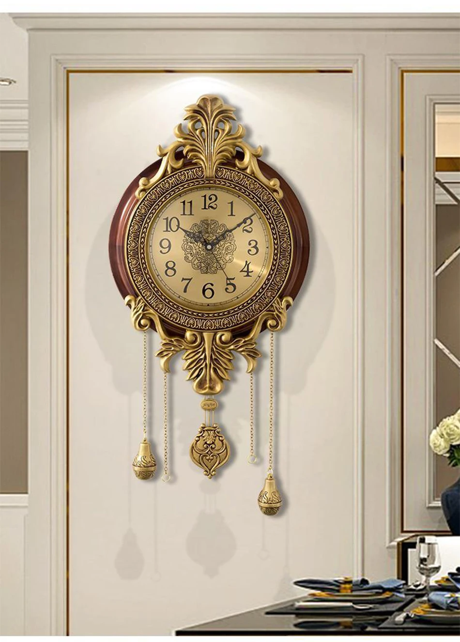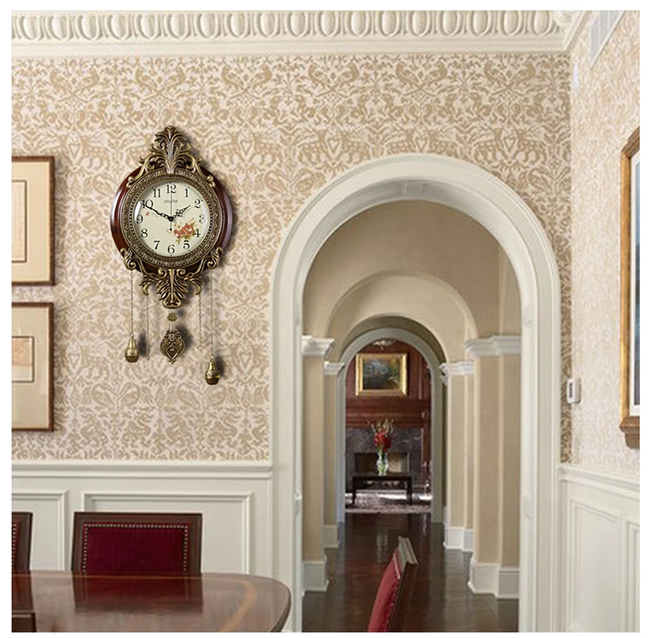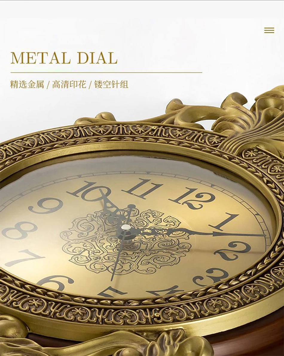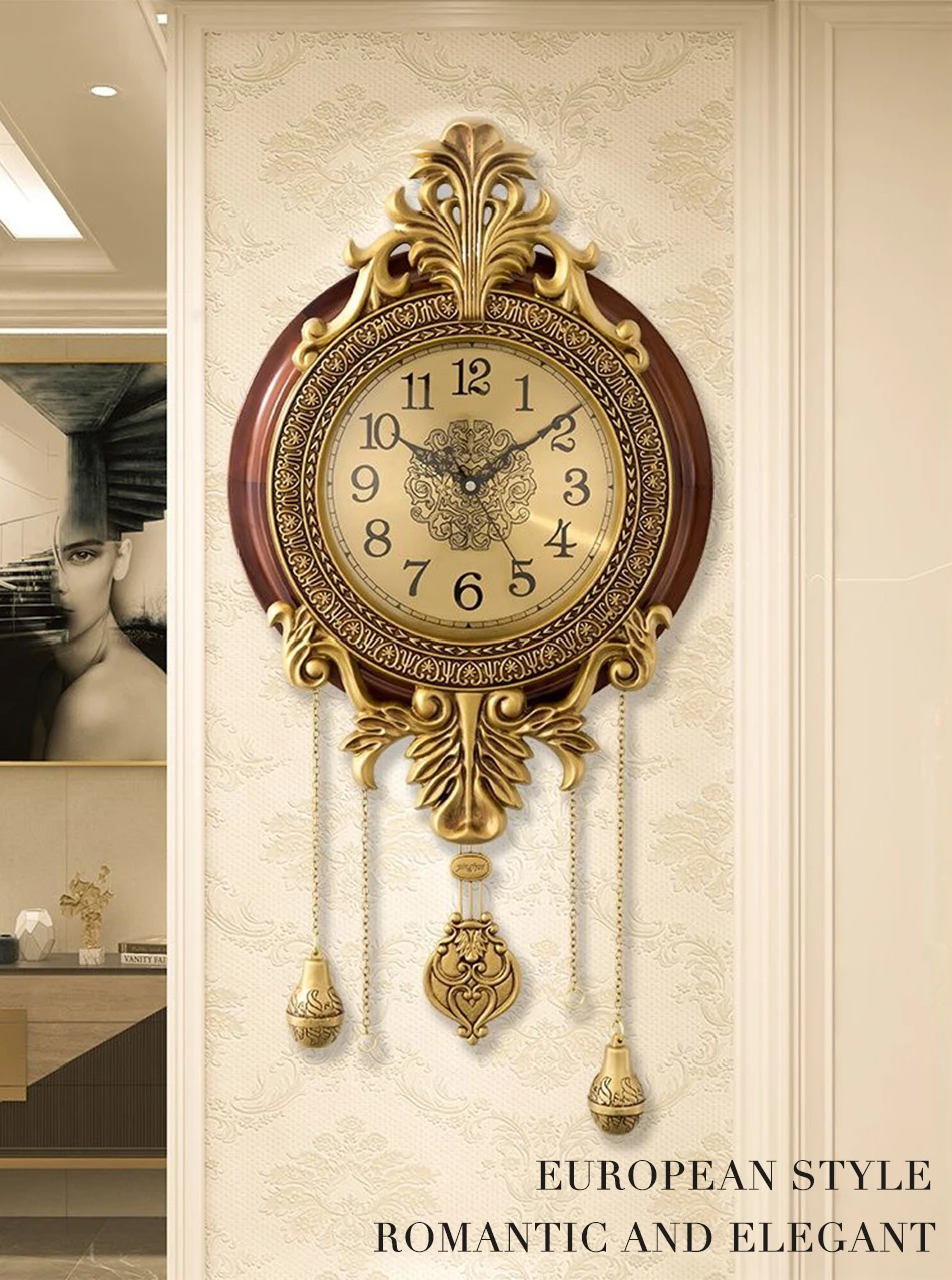 American Solid Wood Silent Swing Wall Clock Living Room